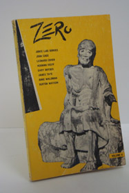 Zero (Vol. V) Zero Press, Los Angeles, 1980. Trade Paperback. Very Good. Ink stamp on front page inside, lightly rubbed, minor corner crease on front cover. 1980 Trade Paperback. 181 pp. A literary journal featuring the work of several important authors - Jorge Luis Borges, Leonard Cohen, and Gary Snyder - among others. A compilation of poems, short stories and interviews. Yesterday's Muse BooksBook number: 1776855 USD 10.00 [Appr.: EURO 7.75 | £UK 6.5 | JP¥ 993] Catalogue: Literature