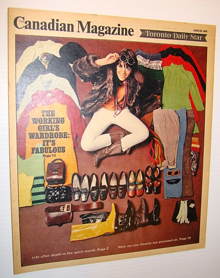 Canadian Magazine, June 29, 1968 Canada: Toronto Daily Star, 1968. First Edition. Single Issue Magazine. 24 pages. Features: Spiritualist minister Tom Bartlett holds a seance to handle personal objects of famous Canadians and assess their personalities; Comeback jockey Chris Rogers; Fashionable young lady Wendy Sauder and her working girl's wardrobe - article with colour photos; Don Smith's self-made Indian artifacts are models of authenticity - article with photo; Doug Wright's Family; Our Air Needn't Be This Polluted; and more. Average wear. Unmarked. A sound vintage copy.. Good . RareNonFiction.com - Rare Books and MagazinesBook number: 845G0848 CAD 99.95 [Appr.: EURO 73 US$ 97.14 | £UK 62.75 | JP¥ 9374] Catalogue: Canadiana