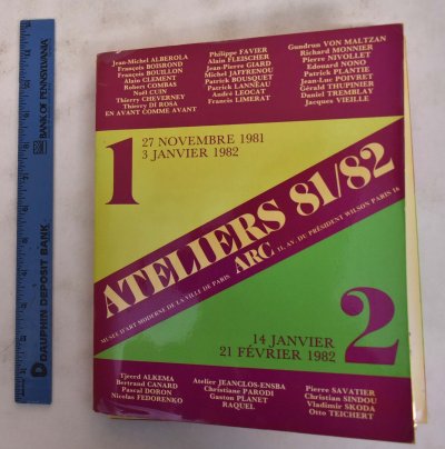 Alberola, Jean-Michel - Ateliers 81-82: Musee D'Art Moderne de la Ville de Paris Paris, Le Musee, 1981. Softcover. Color illustrated paper portfolio holding 38, 4 page pamphlets each of different artists with bw and color illustrations. Text in French. Museum of Modern Art of the City of Paris, ARC .. Paris .. November 27, 1981 - January 3, 1982, January 14 - February 21, 1982. VG- (age toning to wrap portfoloio and light shelfwear but interior leaves are clean) .